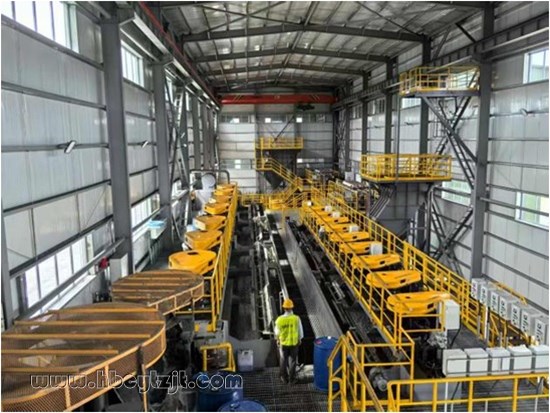 該選銅車間設(shè)計年產(chǎn)銅精粉8000噸,年產(chǎn)硫精粉8萬噸,粗選采用了三臺大型高效節(jié)能的新型100立浮選機(jī),精選則利用兩臺斜板分級機(jī)、一組高效旋流器和一臺塔磨機(jī),以及多級浮選設(shè)備、數(shù)字化加藥系統(tǒng)等先進(jìn)工藝和設(shè)備,自動化程度高,旨在實(shí)現(xiàn)更高的銅、硫回收率和資源綜合利用水平。